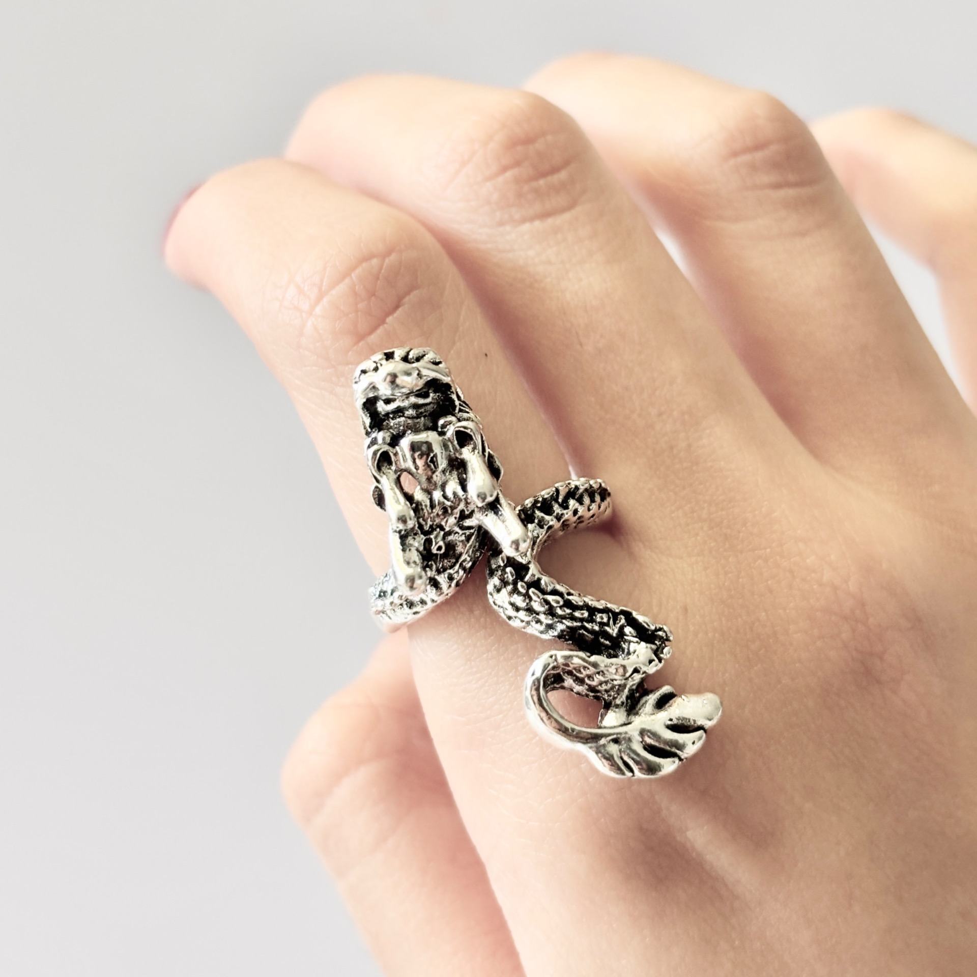 Anillo plateado de dragón