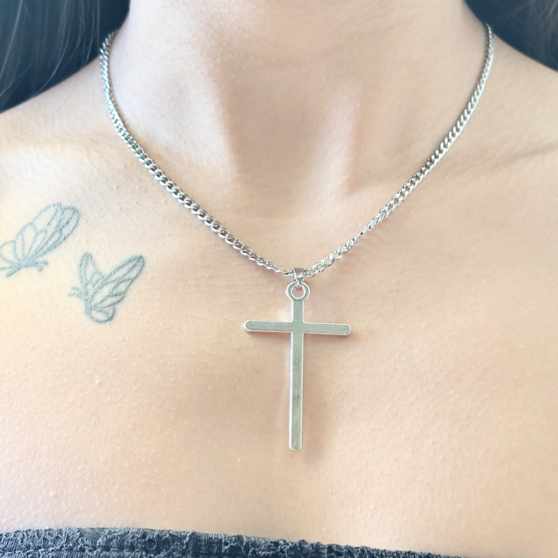 La cadena es de acero inoxidable mide 45cm + 5cm de extensión